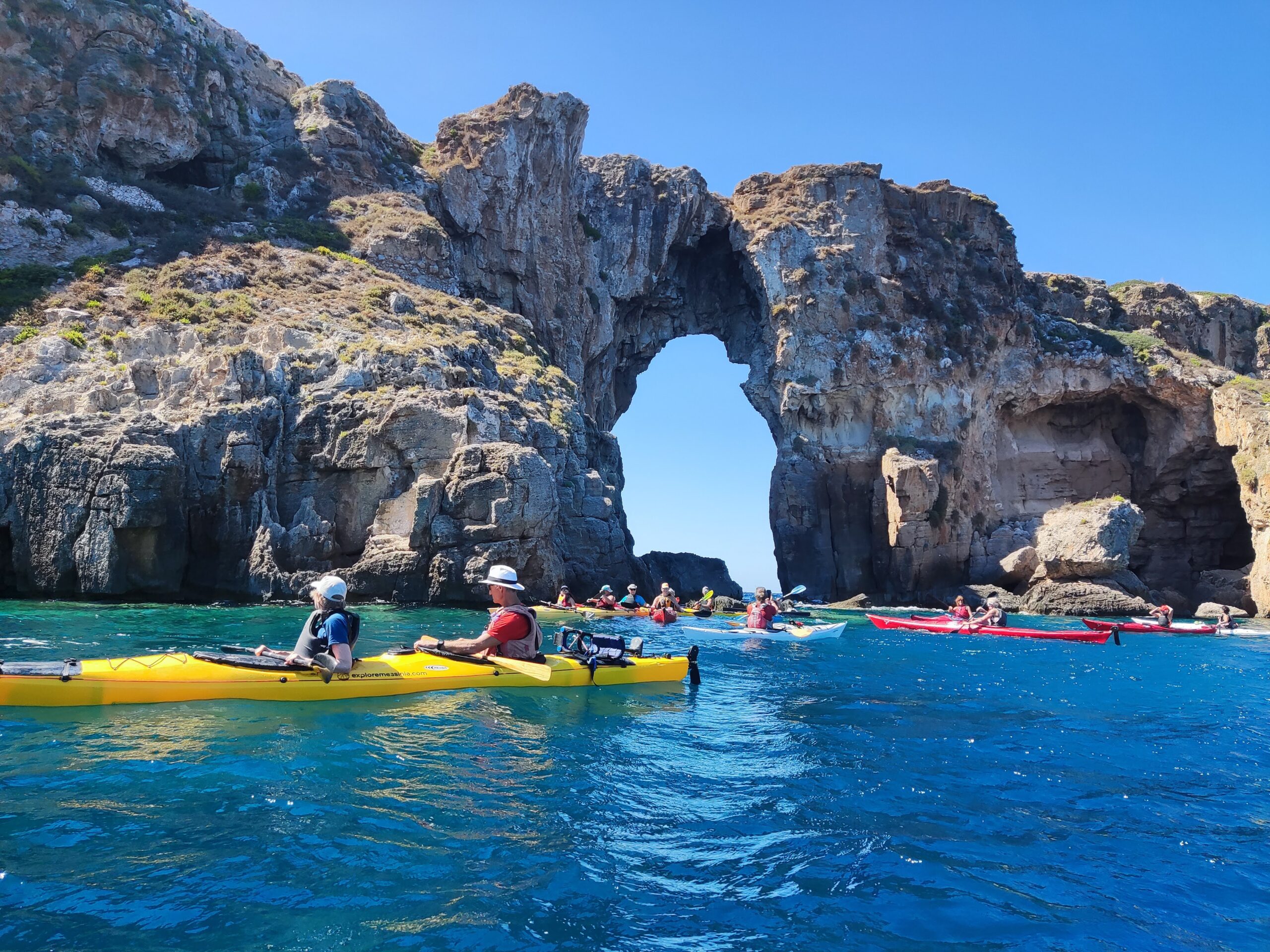 Vi starter eventyret fra Gialova og setter kursen mot den mektige monolitten Fanari, som ligger ved den sørlige kanten av bukten. Her utforsker vi en imponerende naturlig steinbue og får muligheten til å observere et mangfold av fugler som hekker og hviler. Vi tar en spennende avstikker for å utforske havgrotter, tunneler og buer rundt holmen før vi padler videre til den ubebodde øya Sphacteria.